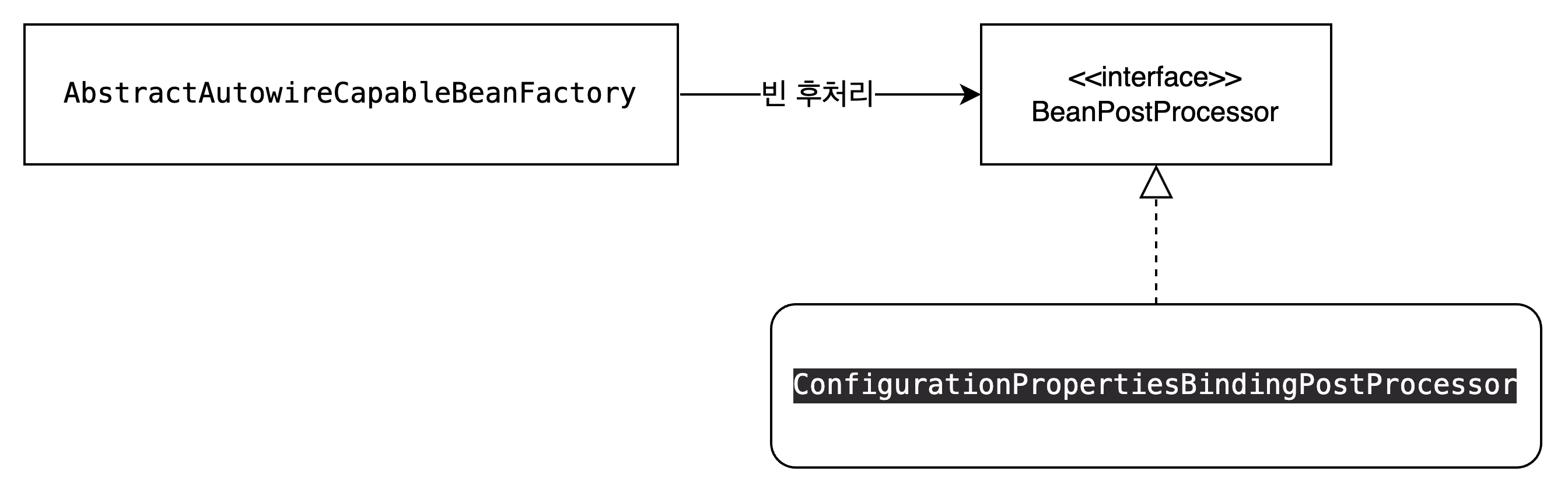 @ConfigurationProperties에 선언된 prefix에 해당하는 환경설정값을 Bean으로 바인딩은 빈 후처리기가 담당한다.